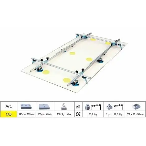 l’utilisation des outils est composée de guides coulissant entre eux pour s’adapter à toute forme de la plaque. Les ventouses peuvent glisser le long du profil