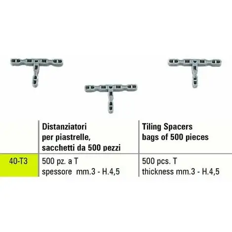 Art. Sigma 40-T3: Entretoise de carrelage T, 500 pièces épaisseur mm.3 – H.4,5.