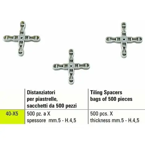Art. Sigma 40-X5: Entretoise de carrelage X, 500 pièces Ă©paisseur mm.5 – H.4,5.